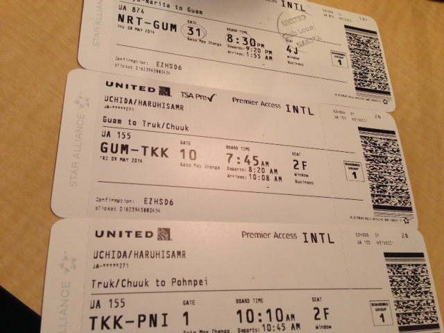 チケットは3枚です。 @TOKYO⇒KH2 A KH2/Guam⇒Chuuk