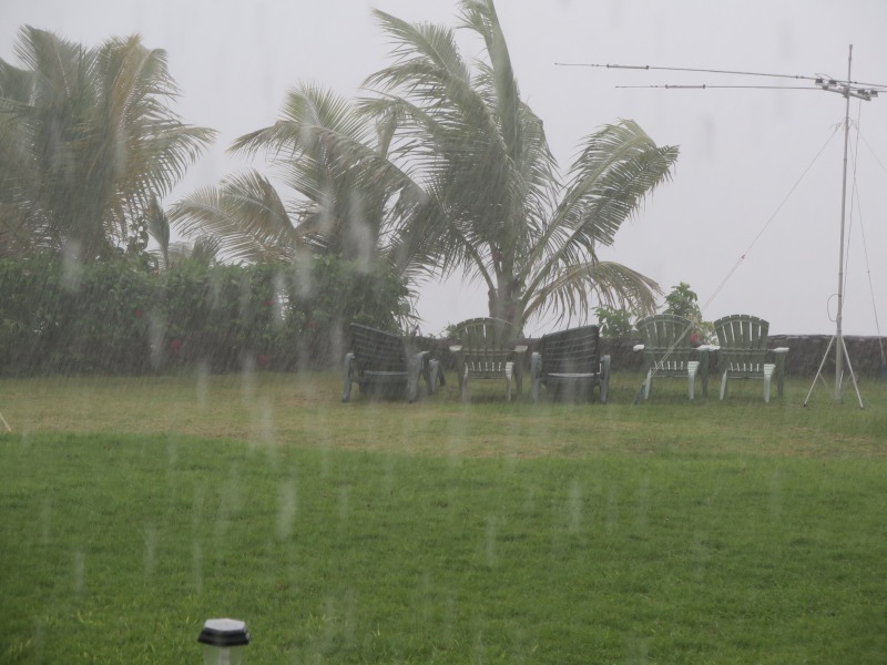 昨日はものすごいスコールがあった。芝生広場が池のようになった。アンテナへの被害はありませんでした。