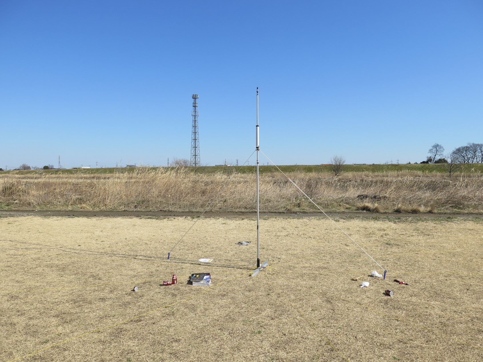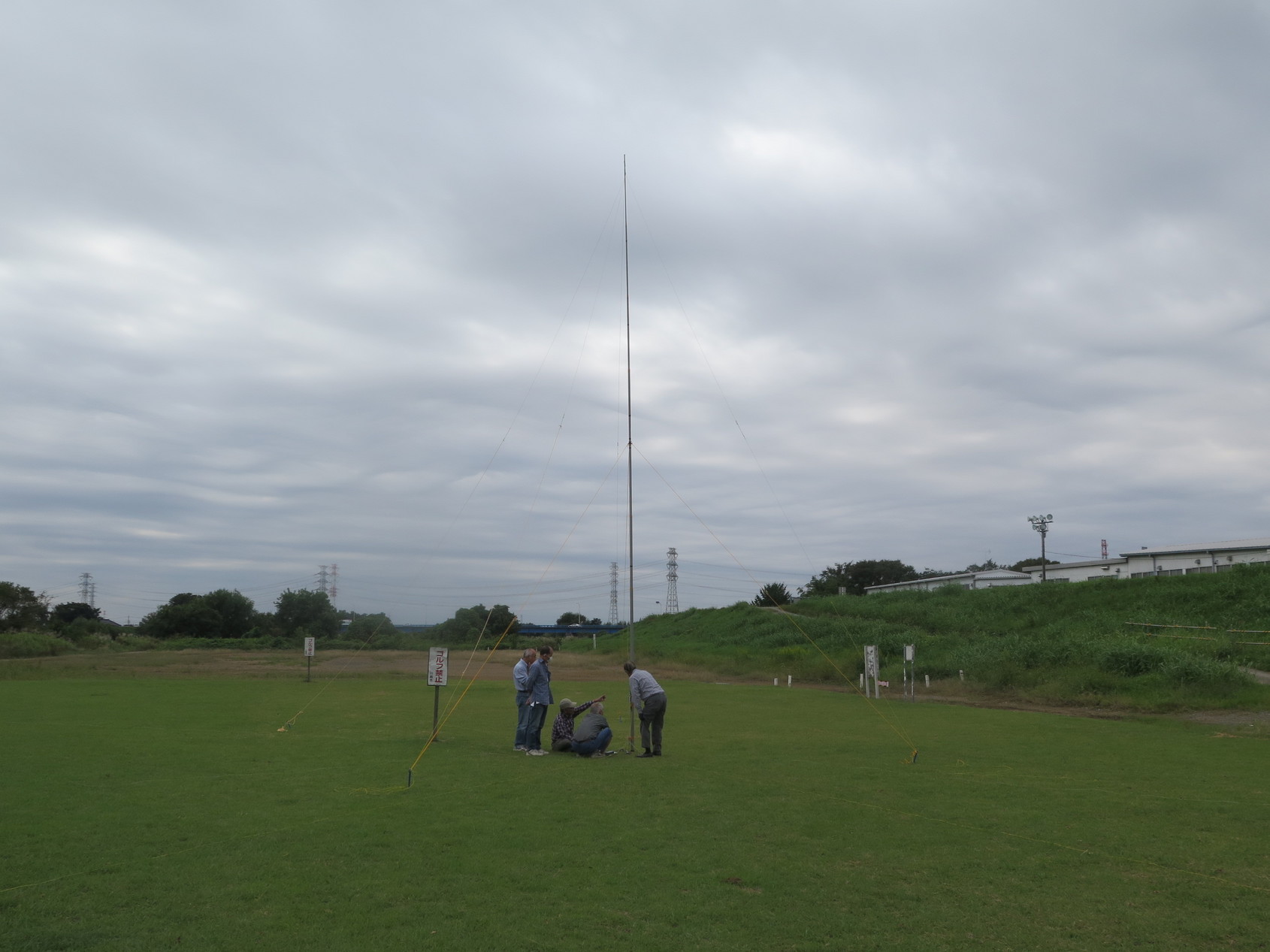 今日はいつものTechnical Staff for DX Expedition (TSDXP)6名が集まり、E51にもって行く160m/80m/75m用アンテナ(Haru Special?) の予備実験を行いました。