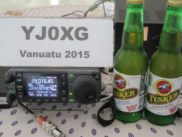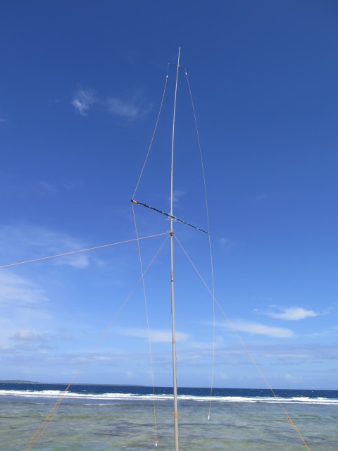 アンテナはいつものバーティカル・・・ラジアルは海水に沈めてあります。SWRは各バンド1.1〜1.3に収まっています。