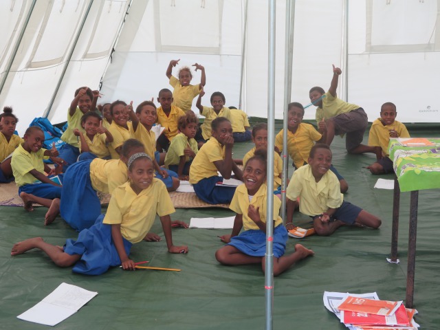 今日はサイクロンで破壊された学校に慰問に行ってきました。
