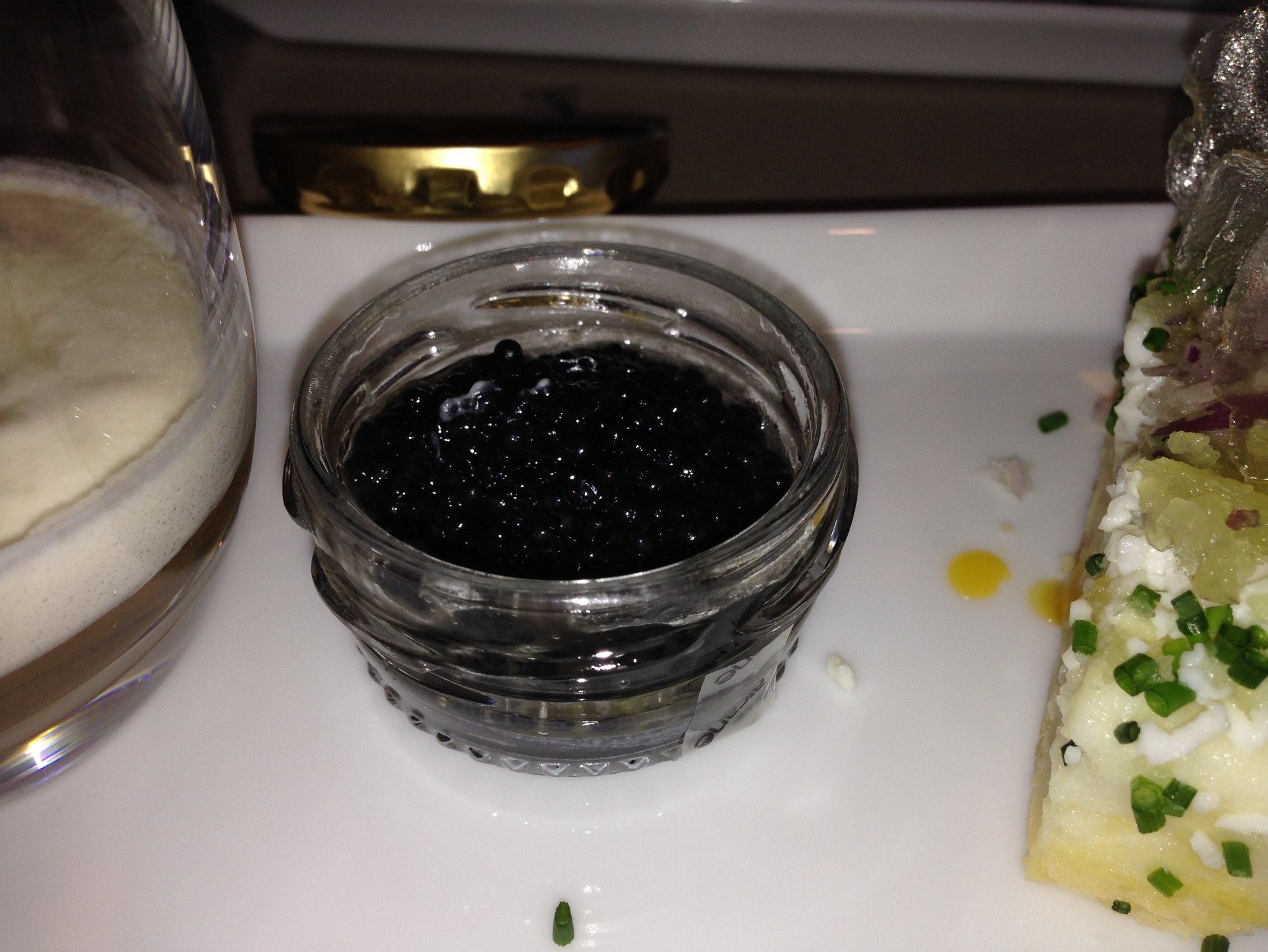 アップグレードでFクラスに乗れました。キャビア1瓶など食べきれません(贅沢!)