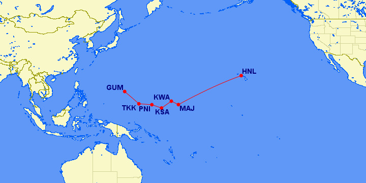 V6、V7に行くのには成田、グアムを経由してChuuk,Phonpe,Kosrae,Kwajalen,Majuro,Honolulu行のUnited Island Hopperを利用するしかありません。コンペジターのエアーラインが就航していないのでやりたい放題?