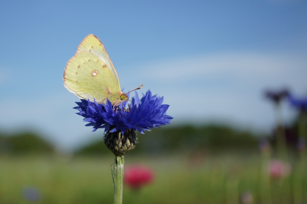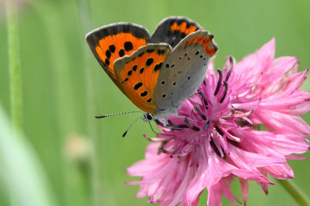 矢車草に止まる、ベニシジミ蝶