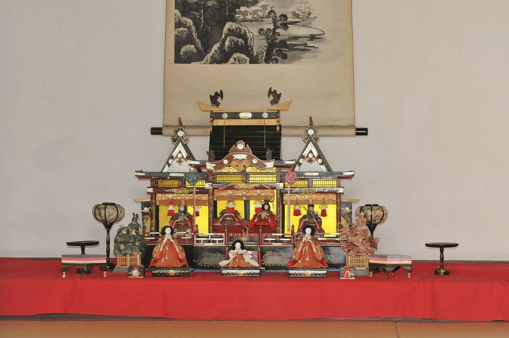 弥生3月とあって、園内の古民家に、雛人形の飾り付けが見られます。