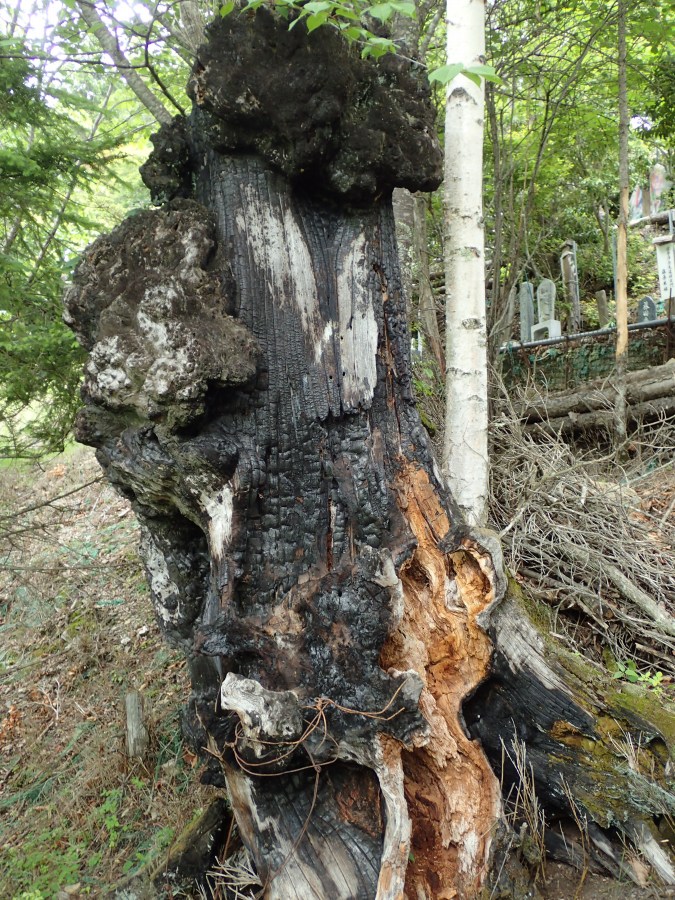 尾根の墜落現場は未だに焼け焦げた大木も