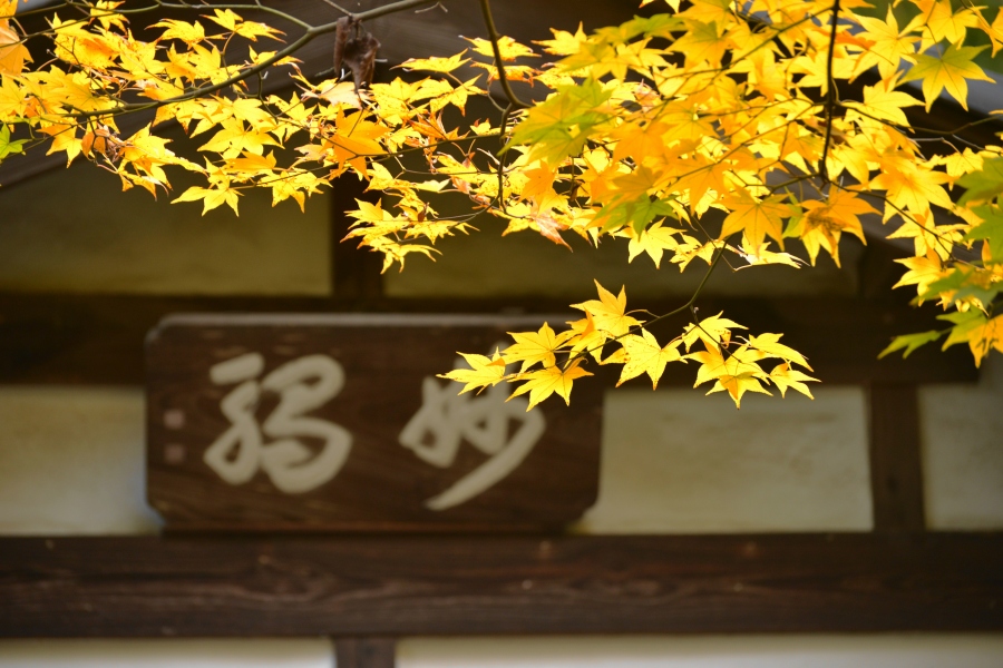 山門付近のもみじは色付いて居ます。が・・・