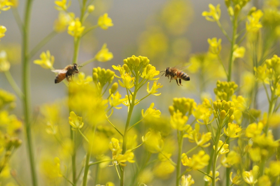 ならば、春告げ虫?ミツバチは春到来の証です。