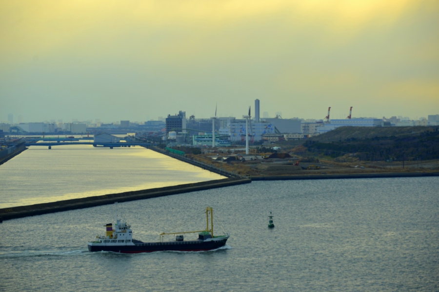 大型船の航行を眺めながらの釣り、これもまた一日居ても