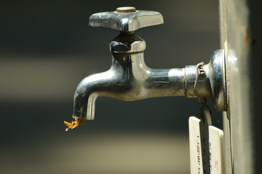 ふと見たら、手洗いの蛇口に飛び込んで