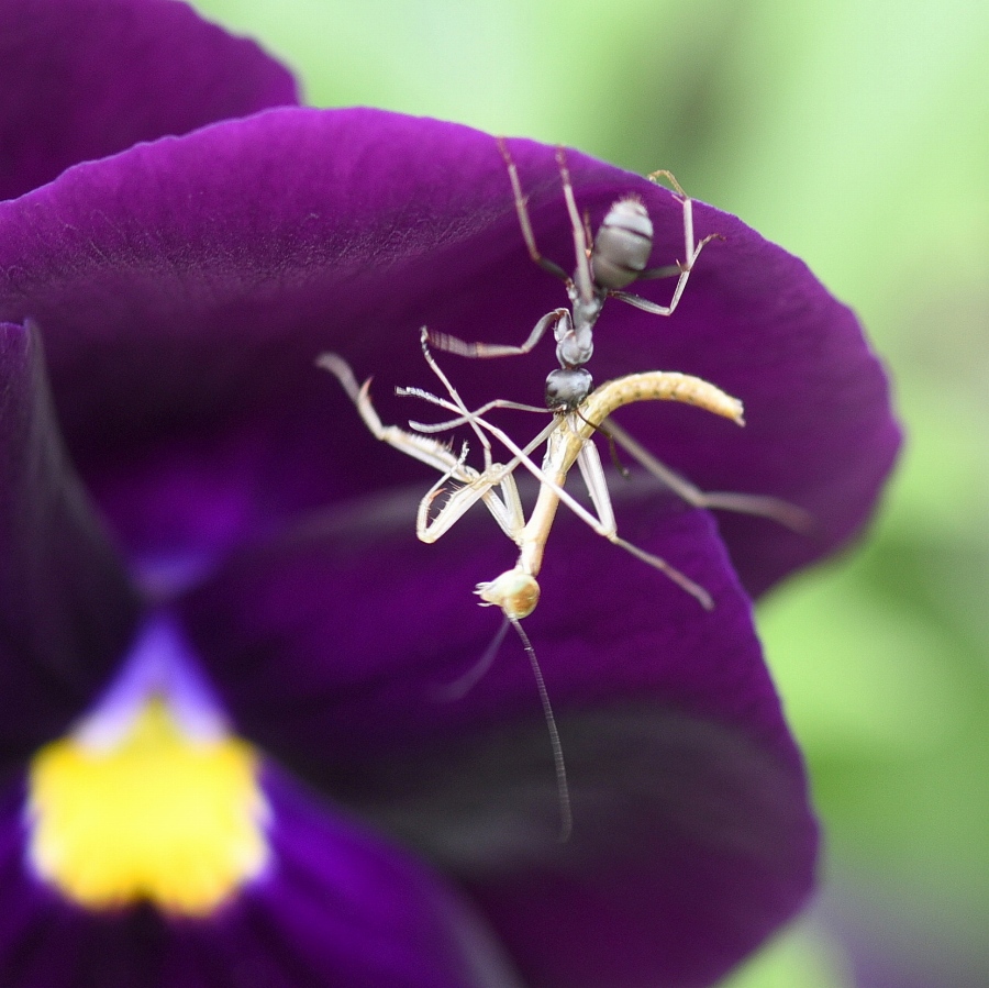 雨上がりの一コマ 幼生どうしの対決を目にしました。
