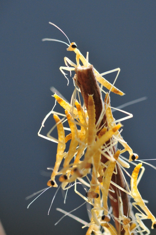 直ぐに脱皮をして親と同じ形になり一齢幼虫になります。
