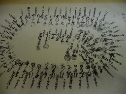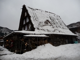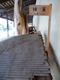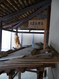 写真はすべて高山陣屋の展示です。左の写真は傘連判状(からかされんぱんじょう)です。江戸時代の百姓一揆などに代表される署名形式。単に傘連判とも。通常の連判状では最初に名前が書かれているものや上部に書かれているものが責任者とされがちなのを回避して、皆が中心より放射線状に署名した。特に首謀者(多くは名主)を隠すためでもす。 高山陣屋とは、江戸時代に郡代・代官が治政を行った場所で、役所や郡代(代官)役宅、御蔵などを総称して陣屋と呼びます。 飛騨代官は安永六年(1777)に飛騨郡代に昇格し、当時4ヵ所あった郡代役所の中でも重要な直轄地となりました。 幕末には全国に60数ヵ所あったと言われている郡代・代官所の中で、当時の建物が残っているのはこの高山陣屋だけです。全国で唯一建物が現存する遺構で、昭和4年には国史跡に指定されました(高山陣屋より)。 板葺(いたぶ)きの上に石を置いて、板が風で飛ばないようにした屋根のこと。このような屋根は、瓦(かわら)がまだ普及せず、板がもっとも信頼できる葺き材料で、しかも釘(くぎ)などがそれほど豊富に使用できなかった時代の生活の知恵です[執筆者:山田幸一] |