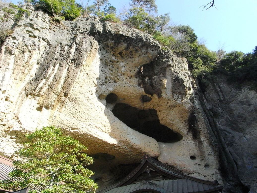 いたるところで垂直に切られた岩壁、露出した奇岩がみられます(名勝の国指定)。弘法大師によって、開かれたと伝えられている大谷観音(国重文)。その中に日本最古の魔崖仏があります(国特別史跡)。