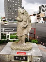右側の写真は大谷石で作った餃子像。さすが餃子の町。JR宇都宮駅東口に立っています。ギョーザの皮に包まれたビーナスがなんとかわいい。ギョーザ好きの多い町、30軒もギョーザ専門店があるとのこと