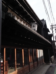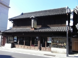 お茶亀屋は明治初め頃、和菓子の山崎家より分家、現在地でお茶の商いをはじめました。住居と店を一棟に取り組んで規模の大きい蔵造りで、袖蔵を併立しています。奥は土蔵が連続して続いており、塗り込められた母屋とともに完璧な防火体制をとっています。