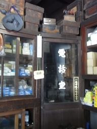 で、嘉永3年(1850)に建てられた蔵です。ギャラリーとして公開しています(木から日曜日の3-7月、9-11月、入館料300円)。陶器関係の展示をおこなっています(右)。