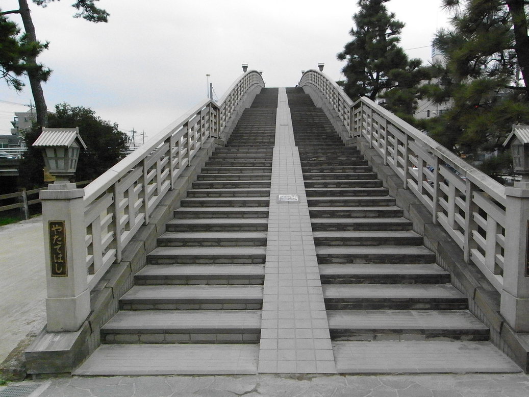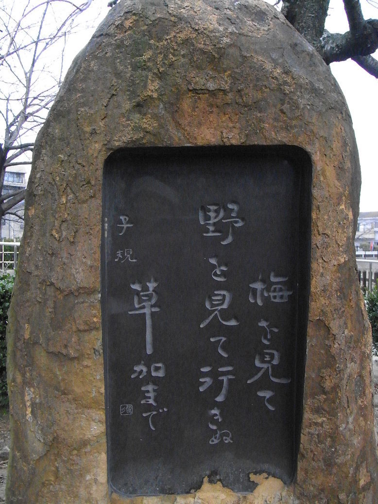 右の写真は草加松原の遊歩道にある太鼓型の橋です。正岡子規は明治27年3月下旬に高浜虚子を伴って、梅をみるために千住、草加を歩いてます。