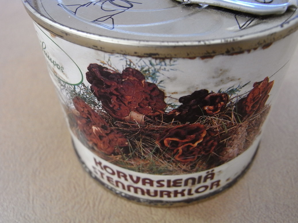 友人のお嬢さんが北欧から購入してきたシャグマアミガサタケの缶詰。このキノコはノボリリュウ科の猛毒キノコですが、ヨーロッパでは食用にもします、だから販売もしています。この毒は熱で分解できるという。私も試食したことはありません。本人も食べずに保管しているそうです。頭部と柄との2部に分かれるが、全体に中空です。頭部はこぶし大に膨らみ、表面は脳みそ状のしわを帯びて茶褐色ないし栗褐色。柄は下膨れの円柱状で白色。春になると針葉樹林内の地上に点々と発生する(上の図)。日本では少ない毒キノコです。