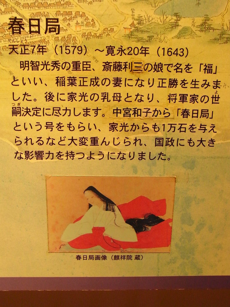 「江戸時代ゾーン」では、展示室内に当時の建物を模造して、東海道屈指の宿場町だった小田原のまちを紹介しています。その中に、春日局を紹介していました。