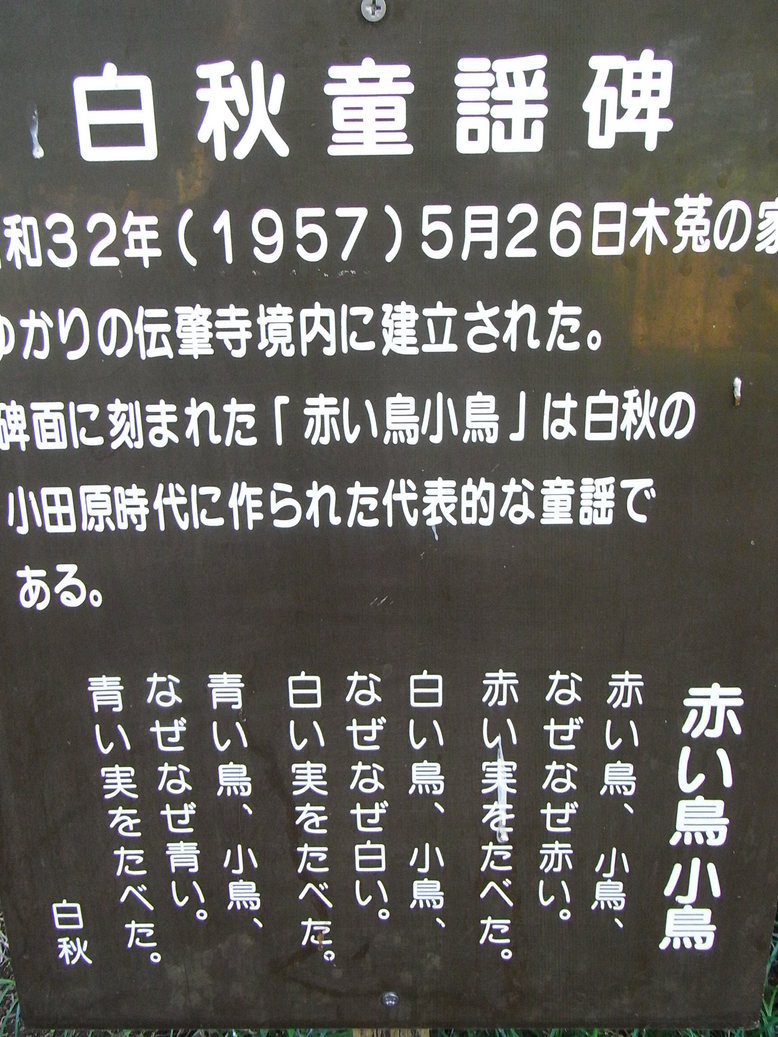 大正から昭和初期にかけて、小田原の温暖な気候を求めて、多くの文学者が居住しました。谷崎潤一郎など、その顔ぶれは日本の文学界を代表するものです。彼らの資料を展示しているのが小田原文学館です。庭園には詩人の北原白秋の作品がある白秋童謡館(左)と碑(真ん中)があります。この周辺には立派な屋敷がありました。