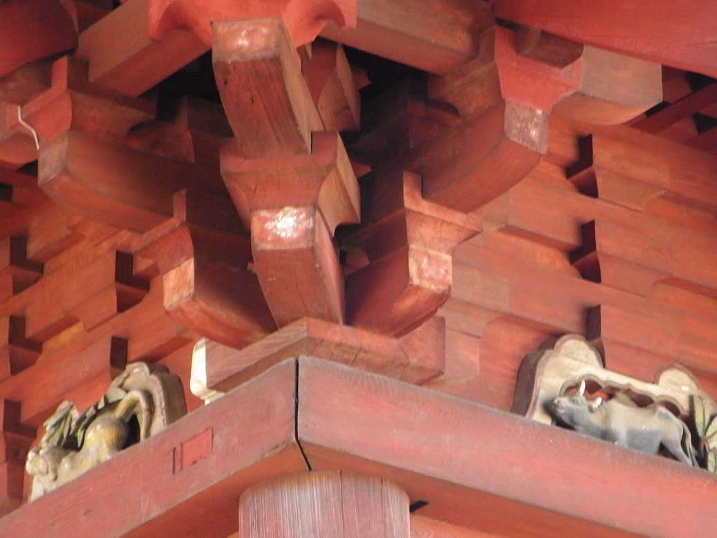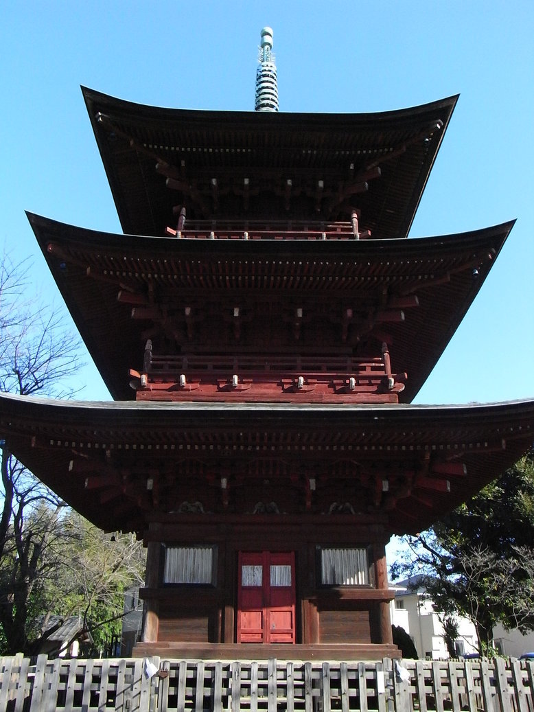 西福寺の三重塔は、高さが約33mあり、埼玉県下で一番高い歴史的木造建築物です。寺内には三重塔と観音堂(右写真)、そして鐘楼があります。その塔には十二支の動物の彫刻が施され、方位を示しています(真ん中の写真)。