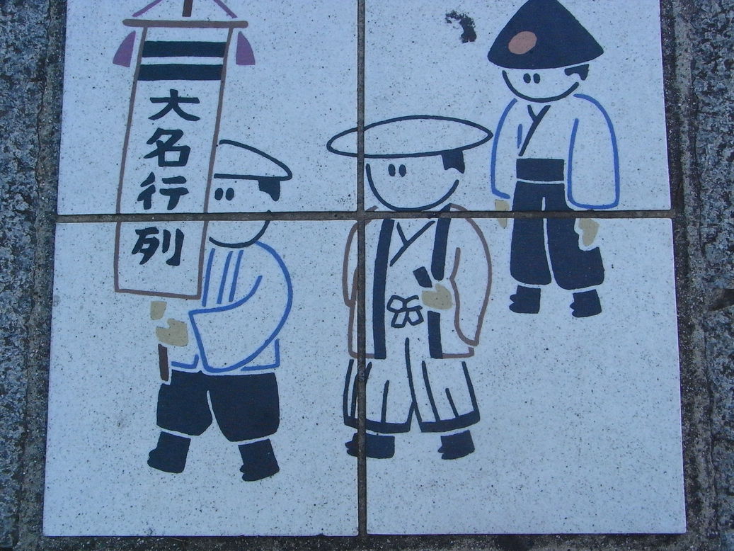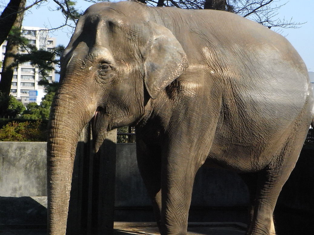 その城址公園の中に動物園ということでなく、象たちが飼育されてます。像の名前は「梅子」で還暦を過ぎたという。元気で過ごしていました。囲いは頑丈でしたが、質素に飼育して、餌代だけで済むという?。真ん中の写真は歩道のブロック。
