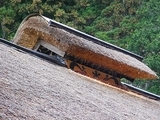 右上は藁葺き屋根上の魔除け(火よけ)で「水」が目立ちます。左下は雪備え。