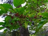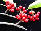 アオハダ(青肌・青膚)の和名は幹の木皮の下の内皮が青い(緑色)ことに由来しています。アオハダは秋になると葉が黄色を帯び、赤い小さな実を短枝(左の写真)に付ける落葉高木樹です。花期は5-6月で白い小さな花をつけ、葉の裏面に脈に沿って毛があります。雌雄別株。モチノキ科モチノキ属。庭や公園にも植栽されています。また滑川の森林公園やこの辺の丘陵地帯にも生育しています。
