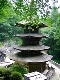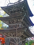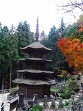 別所温泉の安楽寺に行ってきました。長野県では一番早く「国宝」に指定されました安楽寺のりっぱな本堂でお詣りをすませ、左手の道を上っていくと、八角塔のすばらしい姿を見ることが出来ました。その安楽寺にある木造八角三重塔は、木造の八角塔としては全国で一つしかないという貴重な建築だと思います。人によっては四重塔ではないかといいますが、建築学上、一番下の屋根は裳階〔もこし〕(ひさし)であるということが明らかとなっていますので、正確には「裳階付き木造八角三重塔」と言ったほうがわかりやすいのに。八角三重の塔は全国に珍しくこの塔一つだけしかないと言われているそうです。塔の建築年代は鎌倉の末期で左下の屋根は裳階。