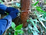 環境ネット主催、秩父演習林のボランティアの案内で埼玉県の東京大学秩父演習林を訪れました。入川林道から森林軌道を歩いて、荒川の起点まで行きました。 この森林軌道が魅力的であるのは、緩やかな勾配で歩きやすく、渓流沿いの森林を観察しながら歩けます。 カモシカが警戒するかのように我々を見ていました。紅葉した落ち葉はブナ(二番上の写真の上)とイヌブナ(写真の下)。上から二番目の写真のように、ブナは成葉になると毛はほとんど落ちてしまう。また、ブナの葉はイヌブナよりやや厚ぼったい。イヌブナの若い葉は両面とも長い軟毛があり、表面はやがてなくなるが、裏面の脈上は黄葉の頃まで残ります。一番下の写真のようにイヌブナは中心部の幹が枯れると、その外側に派生する新芽が成長し、その幹が肥大生育するため、独特の景観と特徴を持ちます。 上から三番目はヒトツバカエデ。別名はマルバカエデ(丸葉楓) 山地に生える落葉高木です。葉はカエデ属に特有の切れ込みがなくハート型をしています。これがカエデの仲間とはちょっとわかりにくいです。秋に黄色く色づきます。 秩父演習林には宿泊施設もあり、我々も申し込むと宿泊できますとのこと。 |