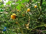 カラタチ(唐橘)という名前はカラタチバナの省略で、唐の橘という意味だという説があるように、カラタチは中国中南部原産の落葉小高木です。万葉集にすでにその名があることから、日本へは大変古い時代に渡来したものと思われます。ミカン科カラタチ属で耐寒性が強く、日本では東北地方から南で栽培されています。大変鋭いトゲ(上から三番目)をもっています。原産地の中国でも、日本でも、外敵進入防止用の生け垣樹種としてよく使われ、武家屋敷に最適です。
