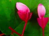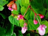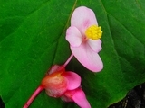 蓚酸を含むので、葉を咬むと酸っぱい。ベゴニアや木立ベゴニア(地下に塊茎や球根をつくらない)と同じ属なので,花や葉が似ています。上から三番目は「クマバチ」らしいものが蜜を吸って花粉を集めていました。動いているので写真がはっきりしていませんが。