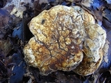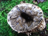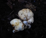 地下生菌の中では見つけやすいキノコです。断面をみると放射状に乳頭又は舌状区画をなし、寒天質で囲まれています(一番上)。成熟につれて寒天質は液化し、流出して空洞化します。なぜかスズメバチにとってはおいしいらしく止まっていることがよくあります。スズメバチはシラタマタケの胞子を含んだ液化状の部分を好んで食べます。シラタマにとっては胞子分散になるので共生関係を持っていると考えられます。