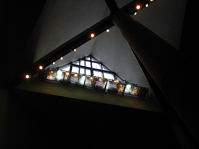 その特徴は二番目の写真、トッブライトで天井部分に三角形に開けられた明かり窓です。晴れた日には、自然光で全体が明るくみえます。