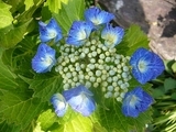 ガクアジサイの花は年によって花の色が変わるそうです。たとえば、前年は青紫であったのが、翌年は白みがかった紫色になることもあります。