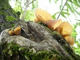 ある公園で、ハナショウブを見に行った時、多少弱っている柳の木に発生していました。上の左は彦根城(カレンダーの6月3日でも見られます)に行った時、撮影したもの。観光地に行ってもキノコが目につく。