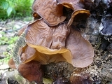 キクラゲ類は通常、ゼラチン質やロウ質で膨れているが、乾くと縮んで膠や軟骨のように堅くなるキノコの一群です。きくらげ(木耳) 耳の形をしているので"木の耳"と書くキノコ。
