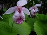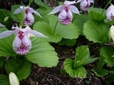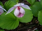 なおざね)が平敦盛(たいらのあつもり)を討ち取った時、熊谷直実が背負った母衣(ほろ)に花の袋状の唇弁が似ているのでこの名前がついた。40年前に台湾産のものを購入して以来、株も殖え毎年開花しています。ラン科アツモリソウ属(Cypripedium)です。