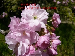 サクラが約250種・1700本が植えられてます。左上写真のサクラはヤエベニシダレ、その他は遅咲きのサトザクラ(里桜)系です。