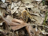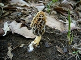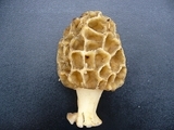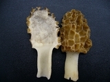 フランスではアミガサタケ(網笠茸)をモレル又はモリーヌとよばれトップ級の食用キノコです。春に発生して土と同じような色(写真3と4)で頭部は円錐形で網目状の窪みがあり、中は空洞で奇妙な形をしています。図のように半分(図1)に切り、その中に肉をつめて料理しても美味です。