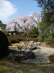 エドヒガンの栽培品種。糸桜とも呼ばれます。普通のエドヒガンの枝は上にのびますが、「枝垂桜」の枝は下にたれます。平安時代に記録があるほど古くから神社を中心に全国各地で栽培されています(中院のシダレサクラも)。