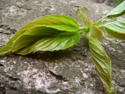 大島桜は伊豆大島(暖かい海岸)に多いことから、この名前が付きました。大きな花をつけるので観賞用に広く栽培されています。こうして栽培された大島桜からサトザクラ(里桜)に分類されるような観賞価値が高い栽培品種が多数生まれました。桜餅を包む葉は大島桜を塩漬けにしたものです。花と同時に伸びる若芽が緑色であることからヤマザクラと区別できます。