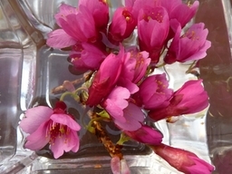 右の写真はカンヒザクラで緋寒桜や元日桜、薩摩桜とも言う。花が赤く開花時期が早いことから人気があります。中院でも桜では一番早く開花します。