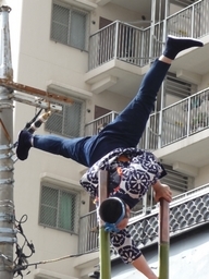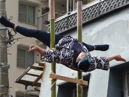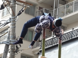 昨日、第20回小江戸川越春祭りで、鳶はしご乗りが川越市仲町交差点で行われました。鳶はしご乗りは、強風の中、地上6mのところで、市民の見守る中、晴れがましく日頃の訓練の成果を披露してくれました。今日のブログは、はしご乗りを中心に撮影して来ました。