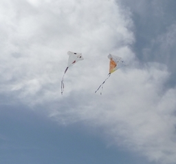 凧(たこ)とは風の力を利用して空中に揚げる玩具です。日本では正月の遊びとして知られていますが、春日部(庄和)では子供の日に凧あげ大会が行われてます。木や竹などの骨組みに紙、布、ビニールなどを張って作られます。