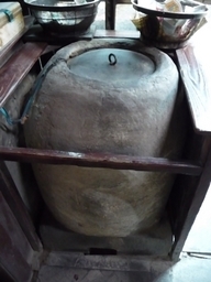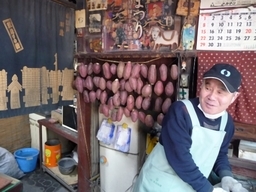 川越のさつまいもの壺焼。土製の大きな壺を用いてサツマイモを蒸し焼きにしています。燃料はコークスを使って約200度くらいで20分蒸すそうです。壺焼きのいもはビタミン、ベーターカロチンが増しておいしくなります。また、中くらいのを一本食べても約180kcalなのでダイエットにもいいそうです。