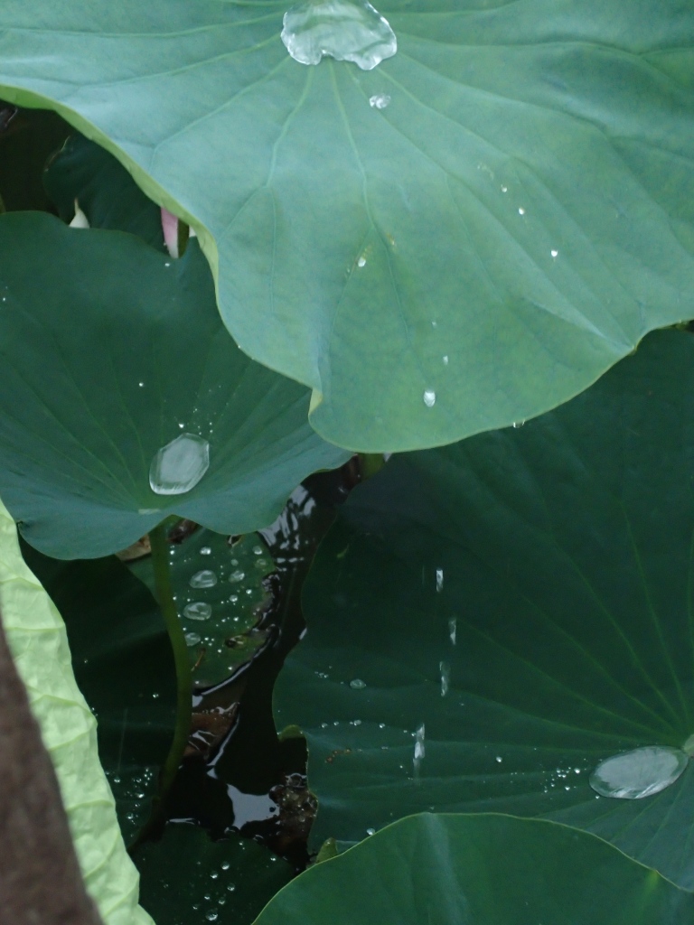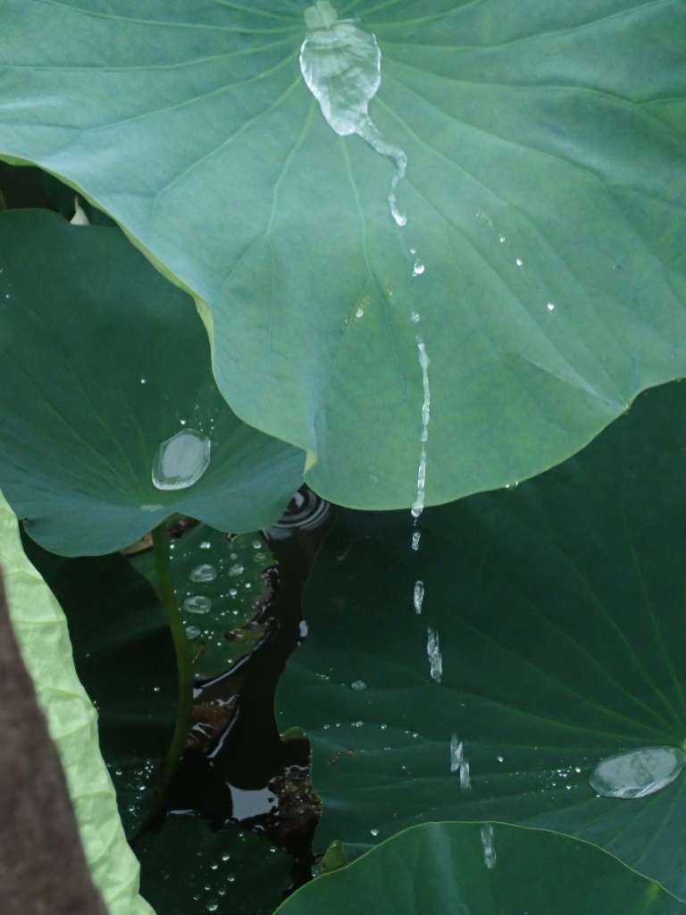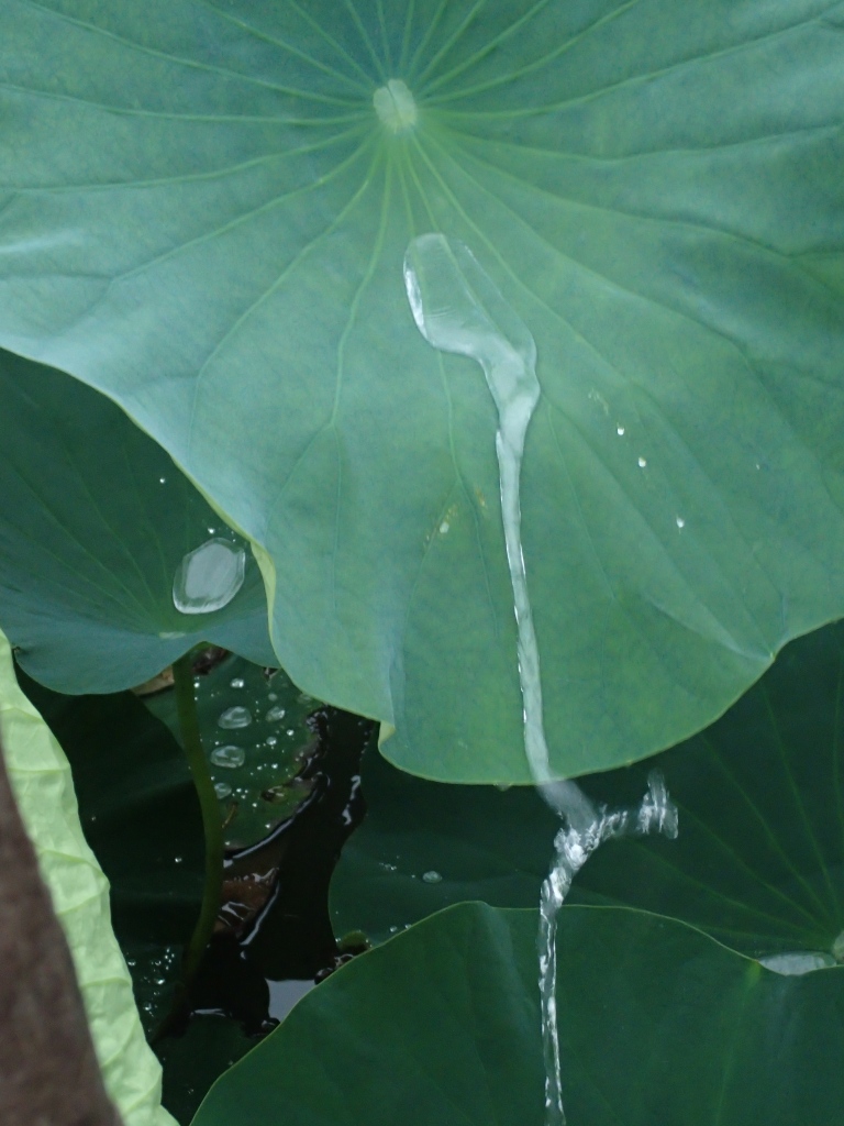 蓮の葉に溜まった雫が