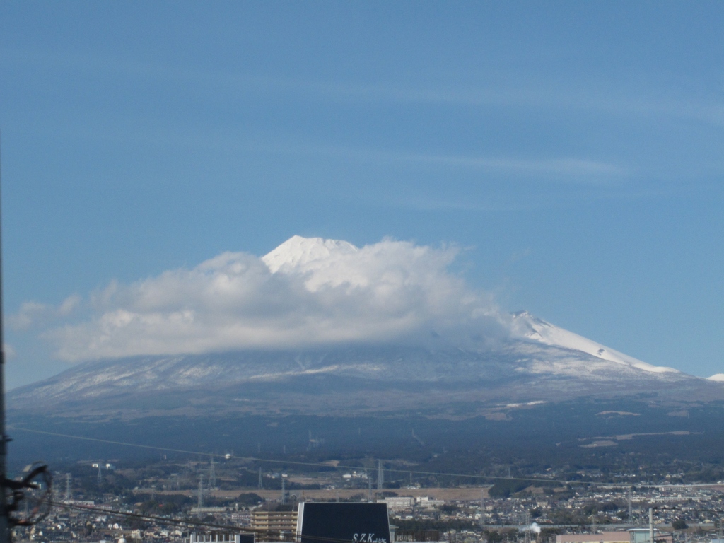 三島駅付近 宝永山の噴火口が良く見えます。 /span>