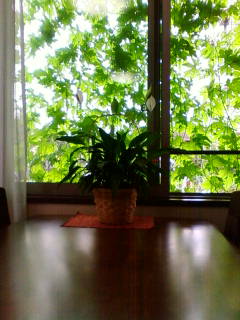 嵐が去り、猛暑復活!。緑のカーテンを・・・。 |